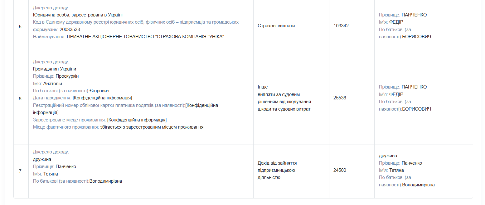 За прошлый год Федор Панченко получил 294 965 гривен зарплаты от исполнительного комитета Николаевского горсовета, 103 342 гривны страховой выплаты и 25 536 гривен выплат в возмещение ущерба по решению суда.