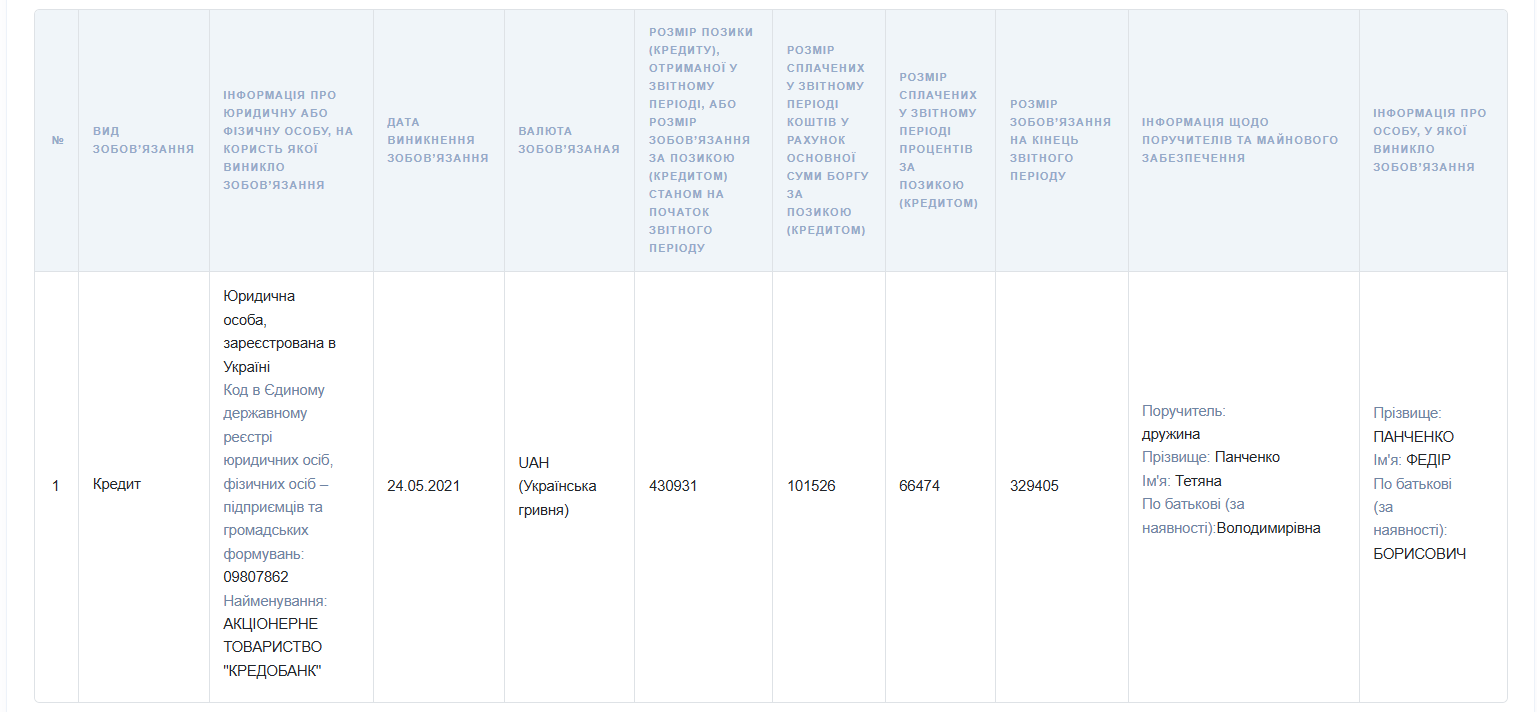Также у депутата есть кредит с 2021 года, по которому еще нужно выплатить 329 405 гривен.