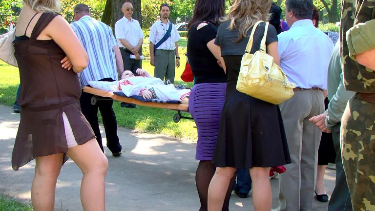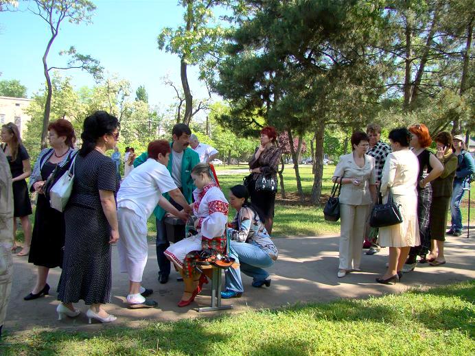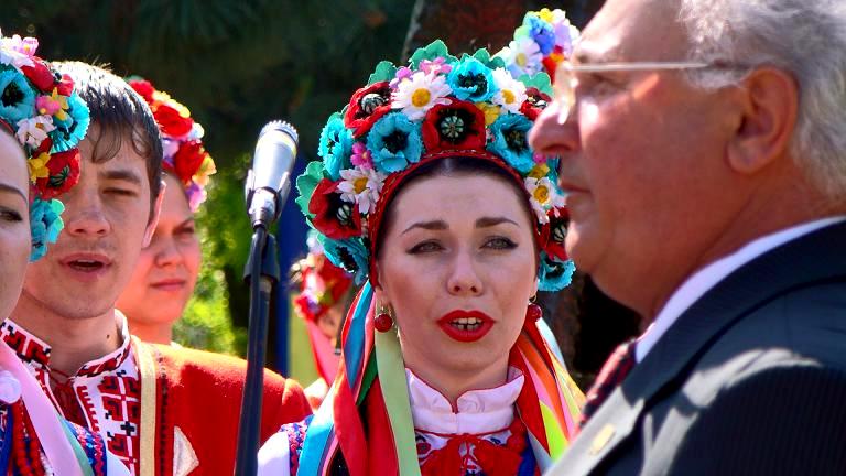 Пока госслужащие толкали речь, стало плохо двум девушкам, которые в украинских народных костюмах стояли на солнцепеке возле памятника. Когда слово взял мэр города Владимир Чайка, за одной из девушек уже подошли врачи скорой помощи, положили на носилки и унесли.