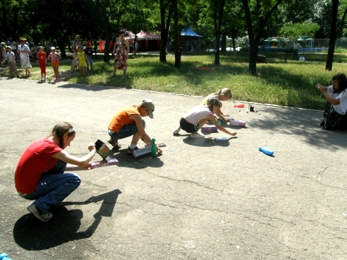 Каждый ребенок смог найти себе увлечение по душе. Маленькие художники рисовали на асфальте свое видение города будущего, а юные спортсмены проверяли свои силы в дартсе и баскетбольном снайпере.