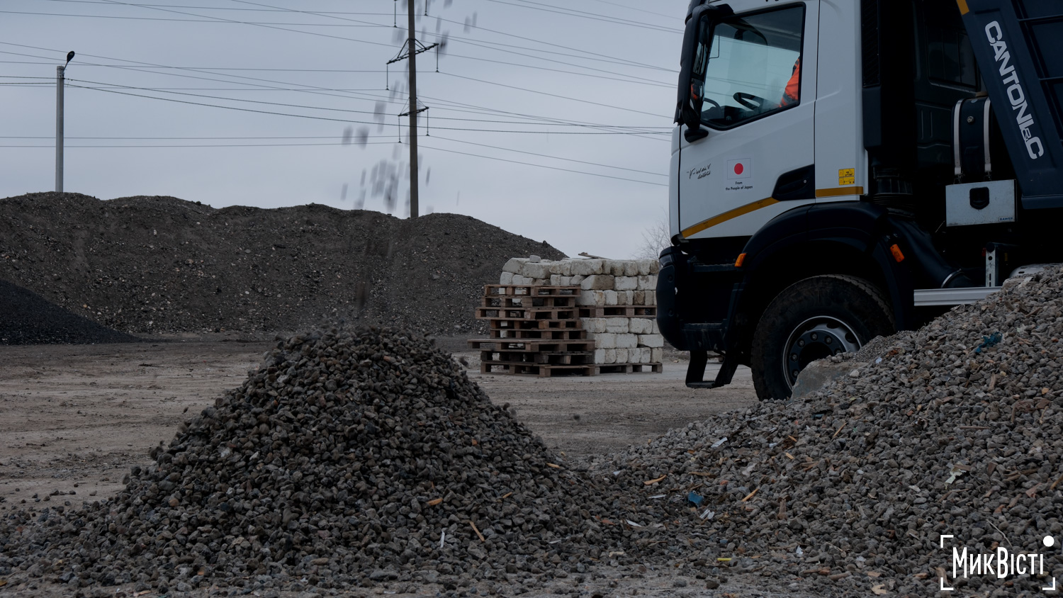 Николаев получил современную площадку с техникой и поддержкой международных партнеров. Переработанные отходы уже используют для ремонта дорог и коммунальных работ — фактически руины получают вторую жизнь.