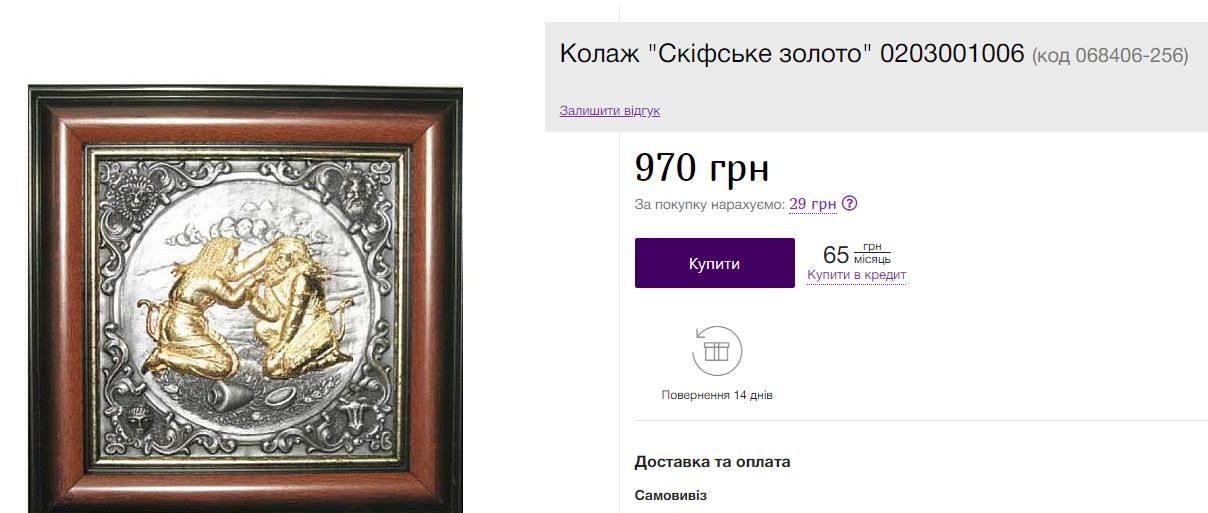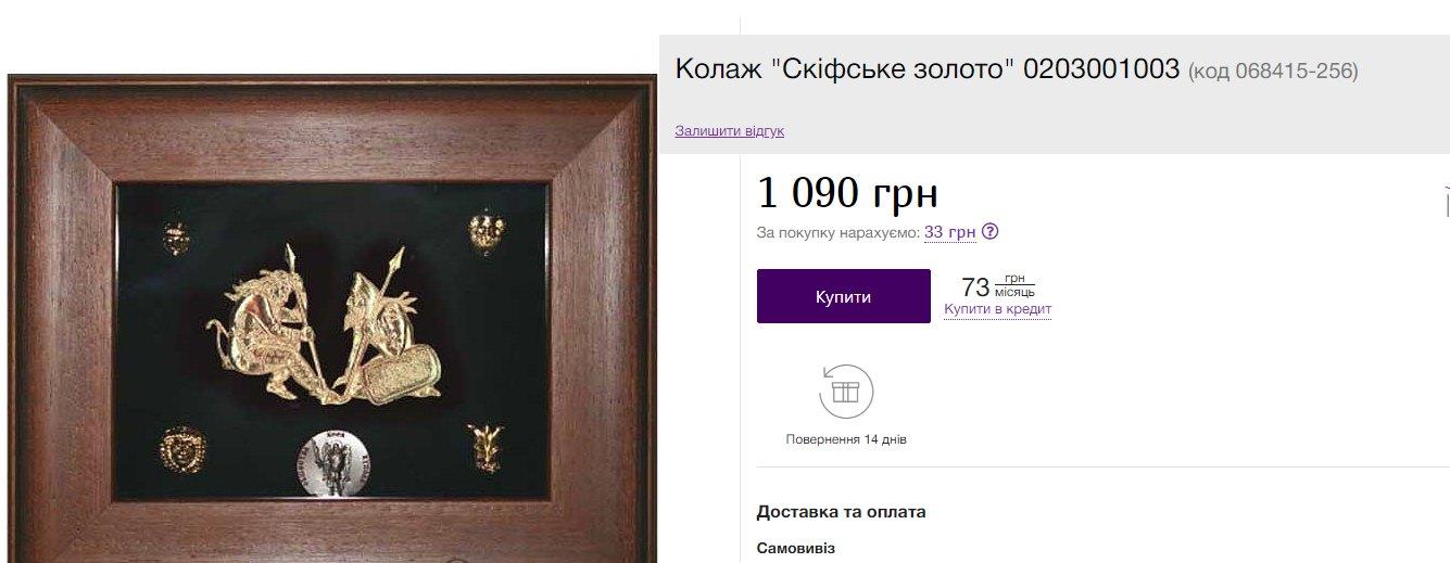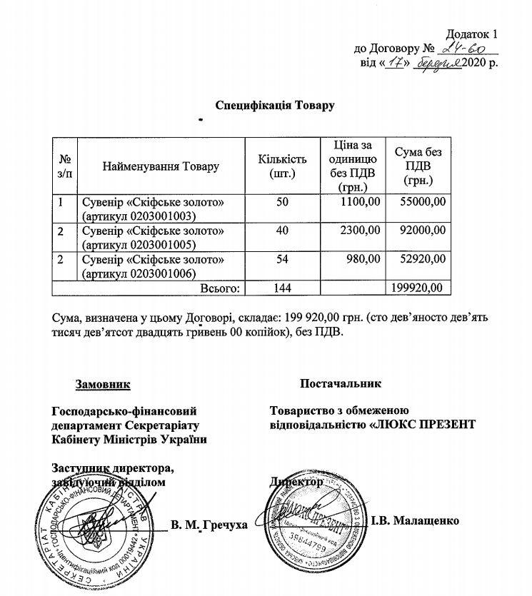 При этом в договоре указывается, что речь идет о заказе 144 сувениров под названием «Скифское золото».