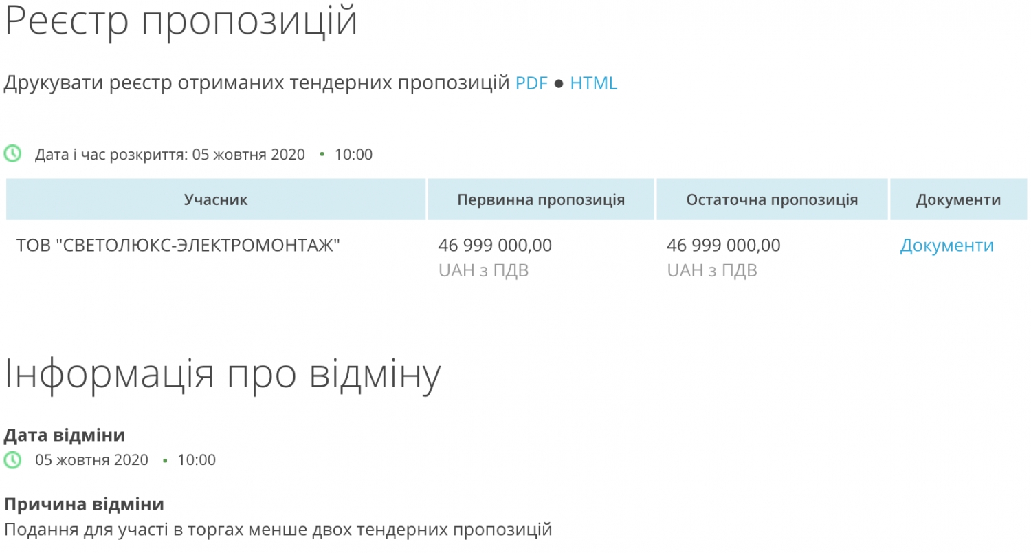 Об этом свидетельствуют данные системы электронных закупок ProZorro.