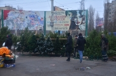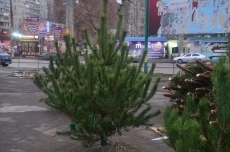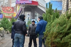 На улице Космонавтов, 142 свой товар выставили несколько приезжих продавцов. Один из них, Александр, рассказал, что привез деревья из Черниговской области, и обратил внимание, что все деревья чипированы. По его словам, покупателей в первые дни торговли совсем нет.