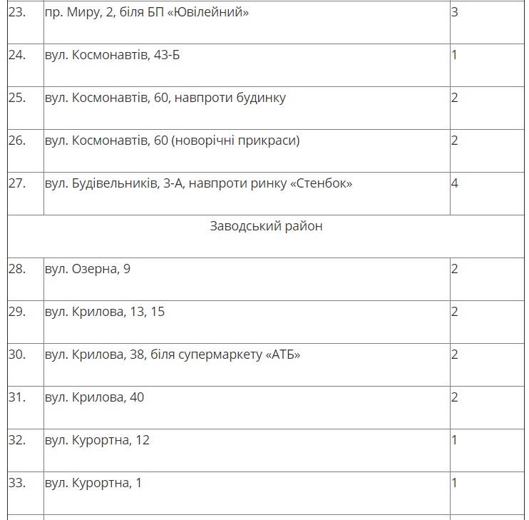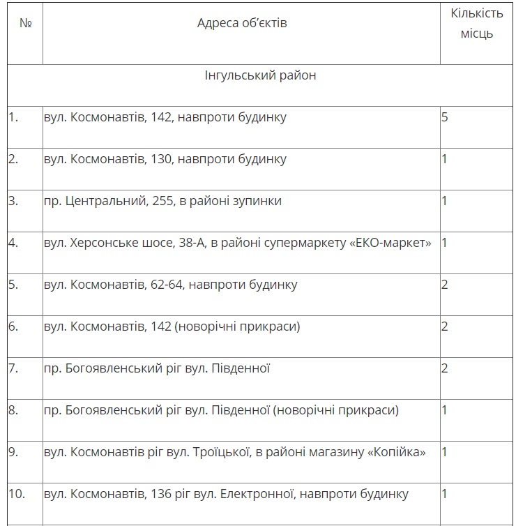 В Ингульском, Заводском и Центральном районах для продажи елок определили 56 мест, а в Корабельном районе — 12 мест.