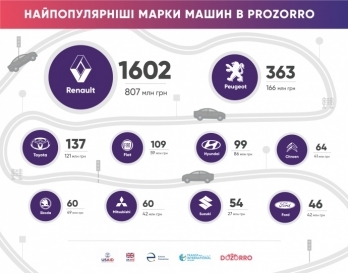 Второй по популярности маркой авто среди госзаказчиков стал Peugeot. За год таких машин приобрели 363. Самая популярная модель — Peugeot 301, приобрели 328 экземпляров (для Нацполиции 250 и 60 автомобилей, для ГУ СБУ в Донецкой и Луганской областях — 8).