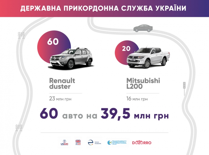 Государственная пограничная служба купила 60 автомобилей на 39 миллионов гривен — приобрели 40 Renault Duster и 20 Mitsubishi L200.
