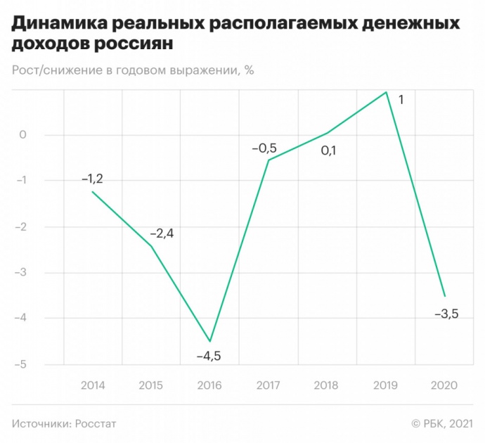 В частности, только за 2020 года доходы упали на 3,5%. До этого, с 2014 по 2017 год, реальный показатель постоянно уменьшался. В то же время за эти годы минимальный рост произошел только в 2018 – всего на 0,1%.