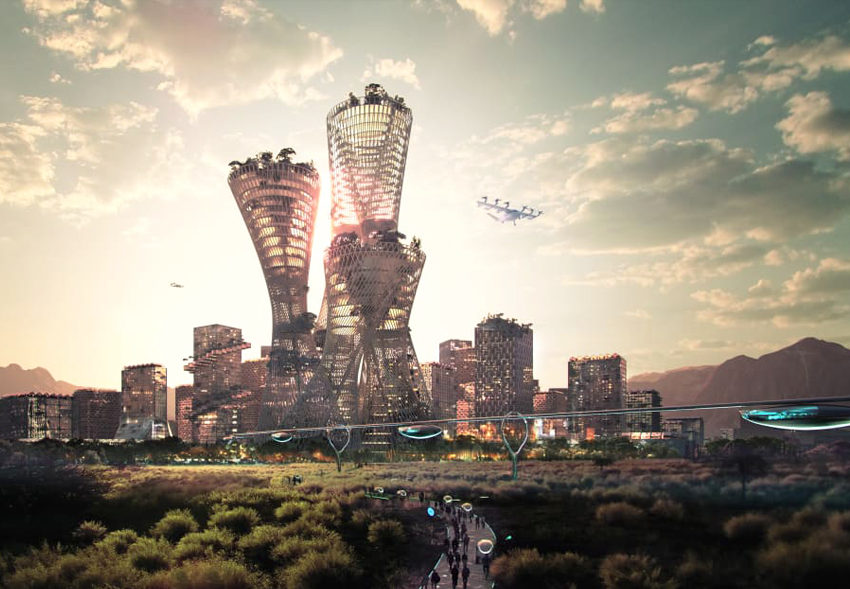 На одном из изображений архитекторы представили небоскреб, получивший название Equitism Tower: его позиционируют как городской маяк (см. главное фото). В здании есть водохранилище, аэропонные фермы и энергопроизводящая крыша.