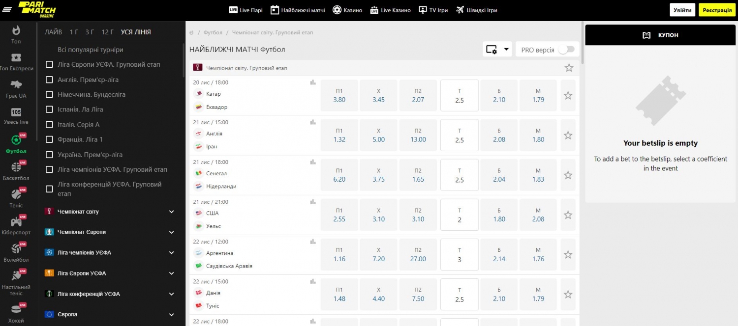 Ставки на гру Катар — Сенегал по лінії Паріматч