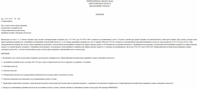 Решение исполкома: главный врач первомайского центра медико-санитарной помощи будет получать почти 45 тысяч зарплаты