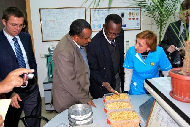 Делегация из Центральной Африки также осмотрела Перегрузочный терминал для зерновых и масляных культур ООО СП "Нибулон", который находится в Николаеве. Особое внимание Министр обратил на работу лаборатории.
