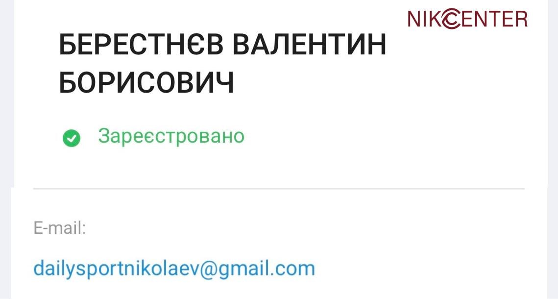 В системе YouControl указывается, что руководителем этого николаевского общества с ограниченной ответственностью «ББВ 2021» является Берестнев Борис Валентинович, который является сыном председателя фракции «Предложение» в Николаевском городском совете и руководительницы Ингульской райадминистрации Анны Ременниковой.