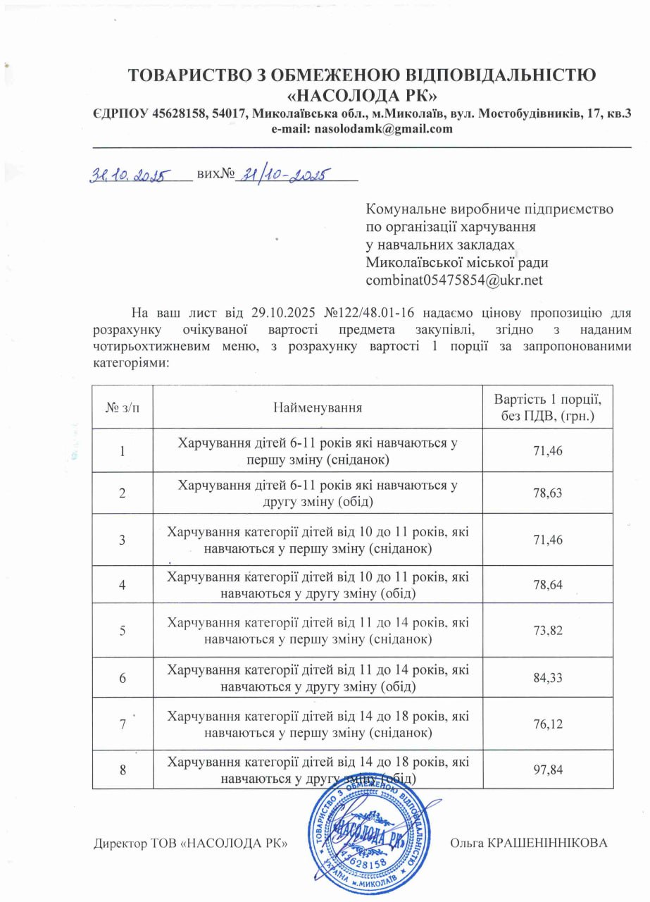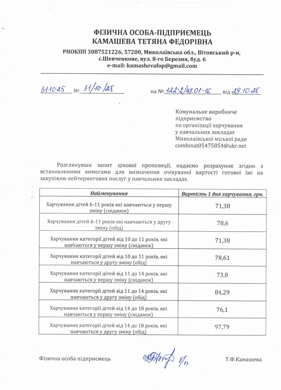 КОП рассчитал стоимость кейтеринга для школ Николаева на основании писем трех компаний из орбиты Ременниковой