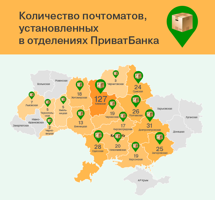 – Мы расширяем сеть почтоматов в своих отделениях, чтобы клиенты могли пользоваться самыми современными сервисами самообслуживания удобно и безопасно, – говорит руководитель направления «Потребительское кредитование» ПриватБанка Андрей Ковтун. – Уникальная технология логистики и использование банковского терминала и платежной карты позволяет гарантировать безопасность получения посылок.