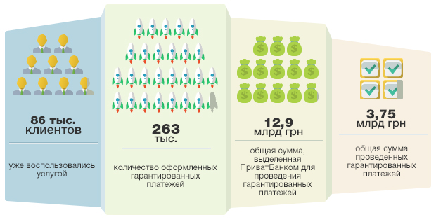 На сегодняшний день более 86 тысяч клиентов ПриватБанка уже воспользовались услугой гарантированный платеж на общую сумму более 3 миллиардов гривен.