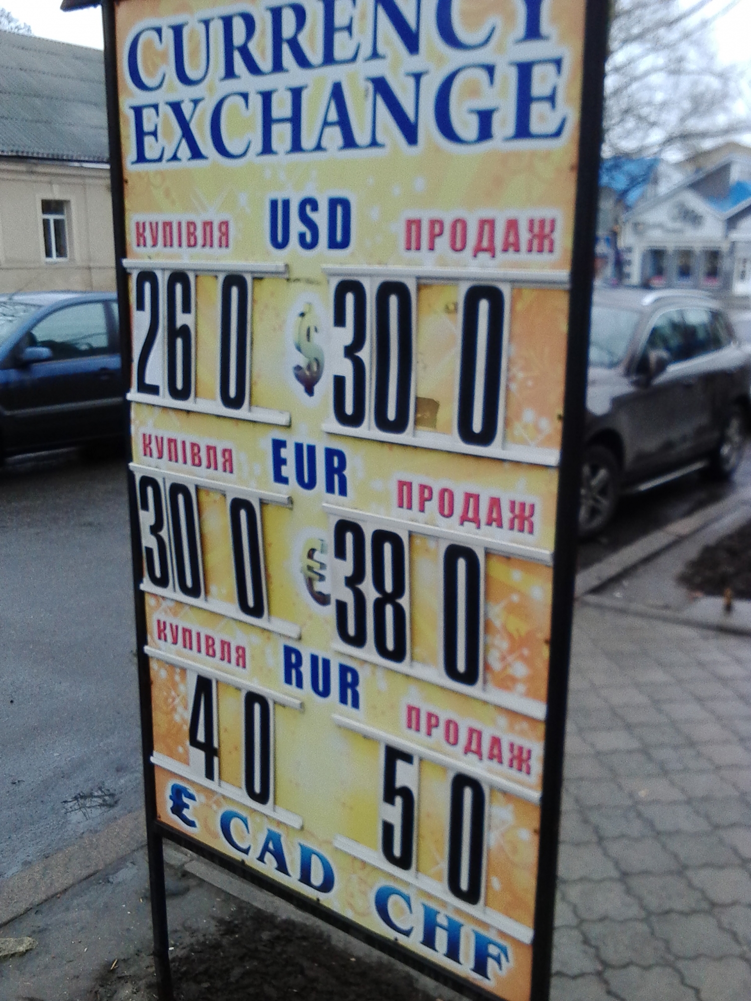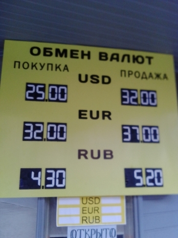 Курс евро составляет 37-38 гривен, а 10 российских рублей покупают за 4-4,3 гривны (продажа 5-5,2 гривны).