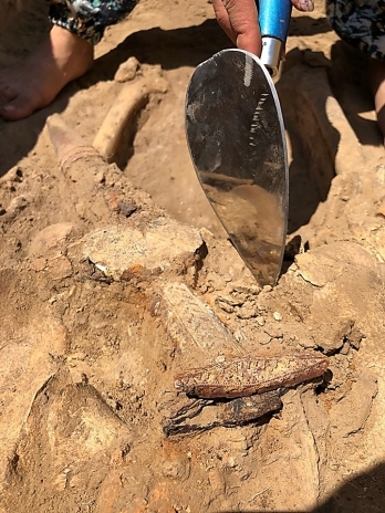 В сопроводительной могиле археологи нашли кости юноши 18-20 лет, вероятно, оруженосца выдающегося человека, похороненного в центральной могиле.