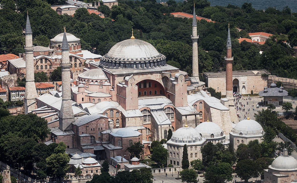 Собор Святой Софии, построенный в VI веке при византийском императоре Юстиниане I, считался в течение почти тысячелетия крупнейшим в мире христианским храмом. После захвата Константинополя османами в 1453 году собор переделали в мечеть, пристроив вокруг него четыре минарета. Музеем Айя-София стала в 1934 году. С 1985 года собор включен в список Всемирного наследия ЮНЕСКО.