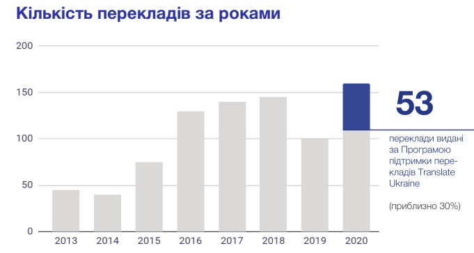 За семь прошедших лет украинские книги стали пользоваться большим спросом за границей: так, с 2013 по 2020 год количество переведенных книг выросло с 48 до 153.