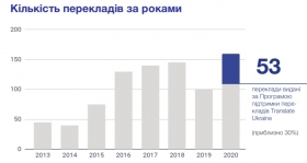 Институт отмечает, что если в 2013 году количество переведенных украинских книг не превышало и пяти десятков наименований, то после 2015 года заметен стабильный рост, с каждым годом количество завершенных переводов подростало на десяток-второй в год.