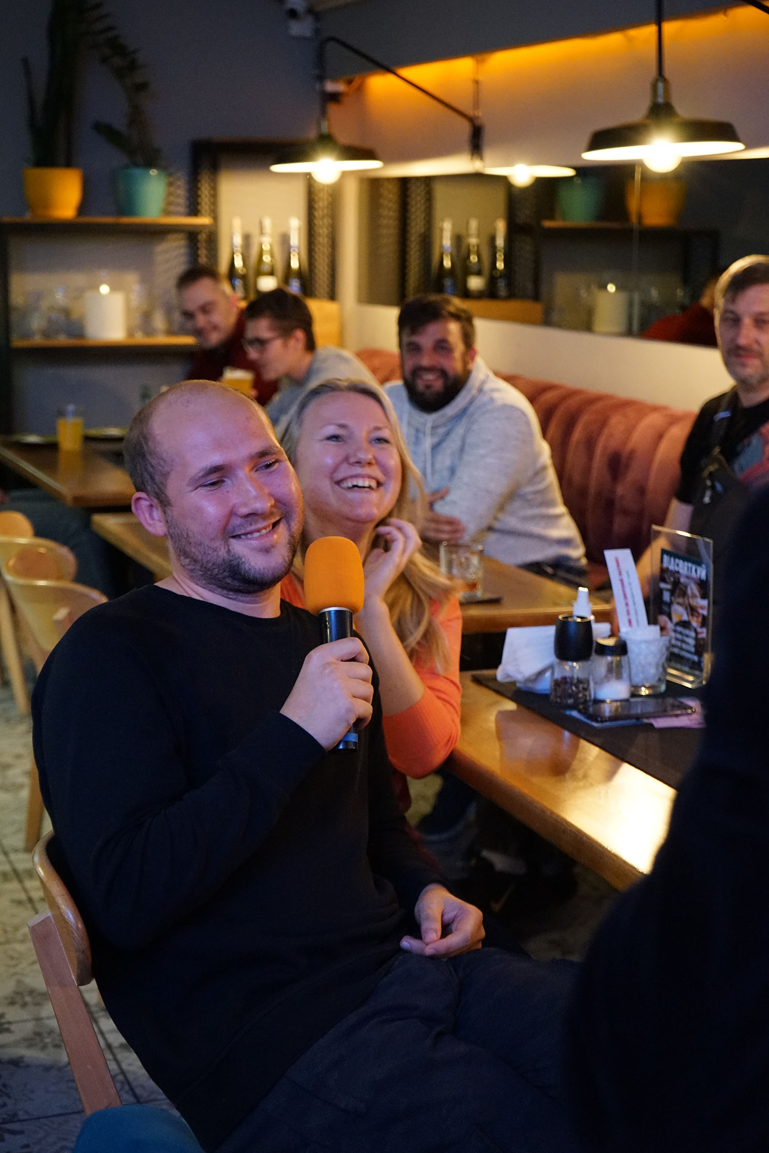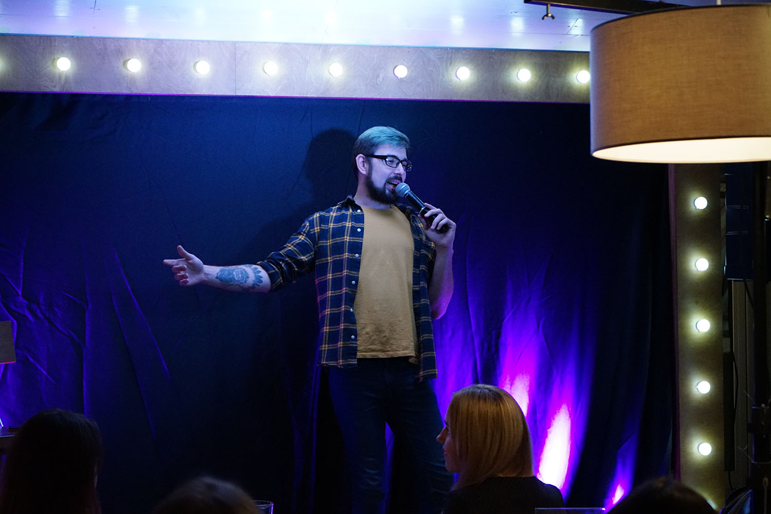 Несмотря на то, что вечеринка называлась «Женский стендап», не обошлось и без мужчин на сцене в этот вечер. Неизменные ведущие Standup Niko Александр Коваль и Михаил Рябоконь начали мероприятие из общения с гостями. Поддержал ведущих комик Владимир Король, разогрев публику перед выходом девушек на сцену.