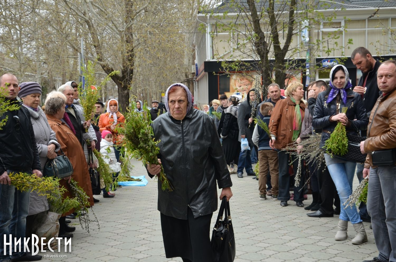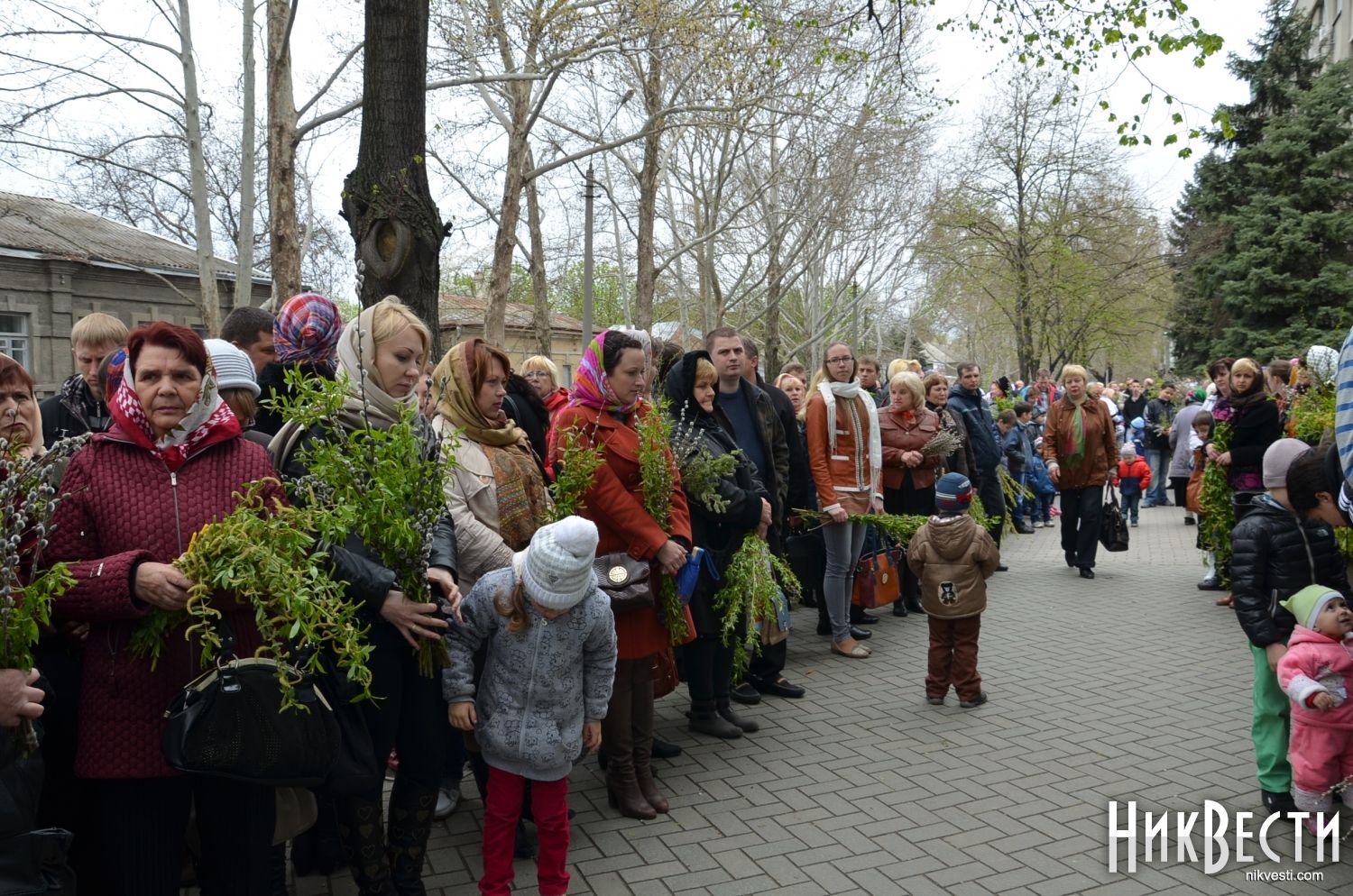 Тысячи николаевцев пришли в храмы освятить ветки вербы, символизирующие пальмовые ветви, с которыми жители Иерусалима встречали и приветствовали вход Иисуса Христа в Иерусалим.