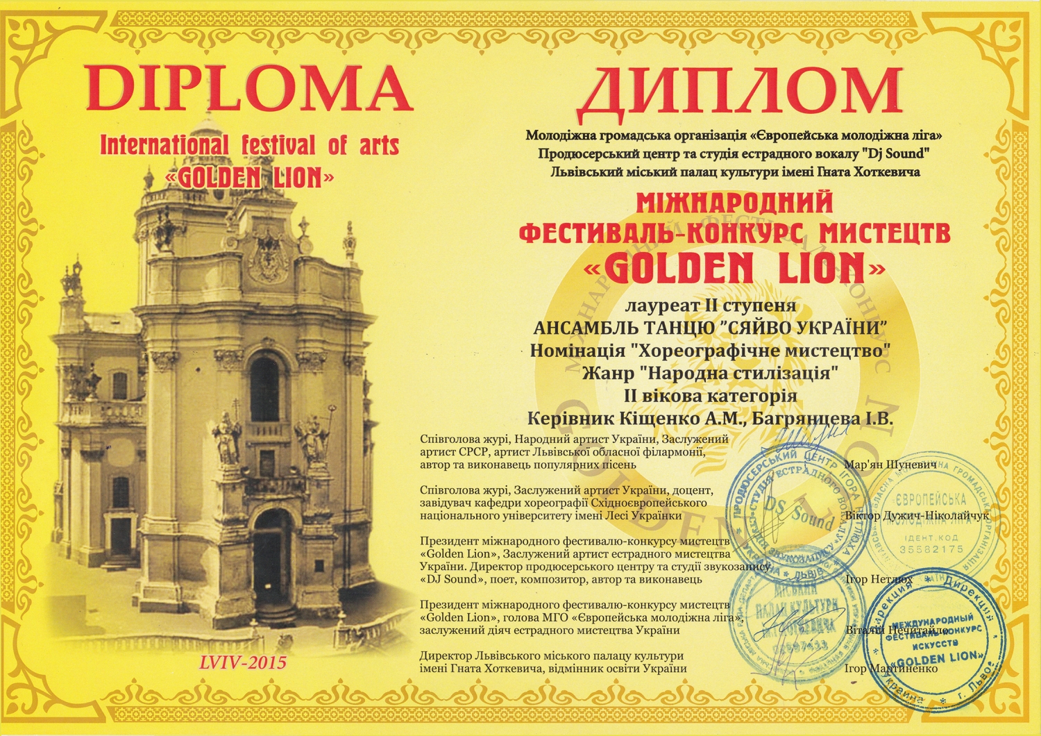 Ансамбль танца «Сяйво України» стал лауреатом II степени в номинации «Хореографическое искусство» (жанр «Народная стилизация», II возрастная категория).