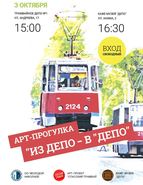 В субботу, 3-го октября, николаевский поэт Ольга Сквирская приглашает ценителей поэзии на арт-прогулку «Из депо – в «Депо». По ее словам, «Спасский трамвай» снова прокатится по старому городу. На сей раз отправной точкой путешествия станет тихое место с таинственной историей – трамвайное депо №1 (улица Андреева, 17).