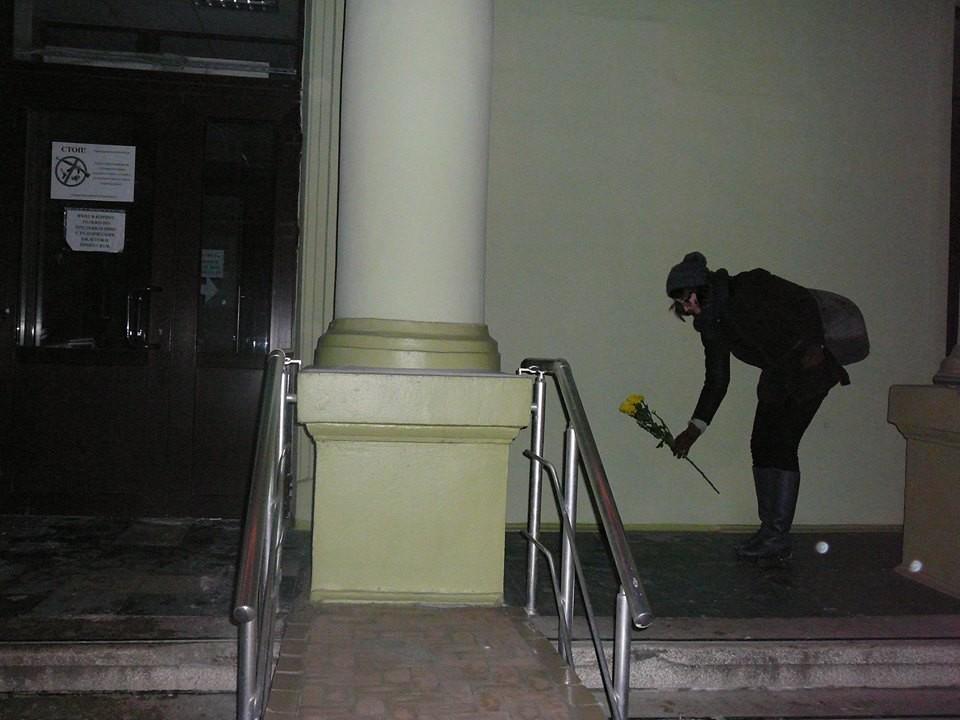В оккупированном Донецке проукраинская активистка возложила цветы у стен ДонНУ – на том месте, где ранее был барельеф украинскому поэту и диссиденту Василию Стусу.