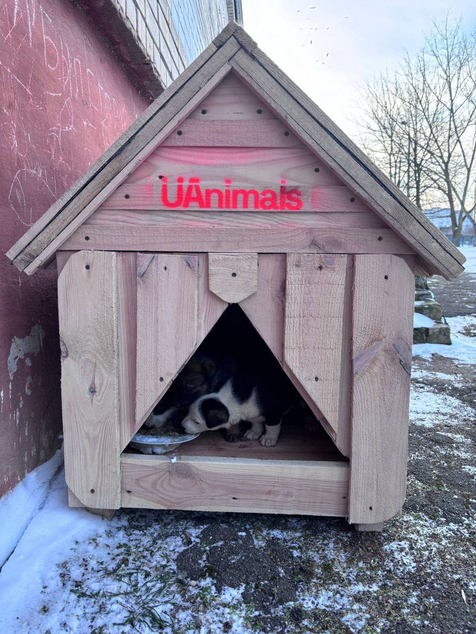Зоозащитная организация UAnimals в рамках проекта «Будки для бездомных животных» установила 33 домика в прифронтовых регионах Украины, чтобы уберечь животных от морозов и непогоды.