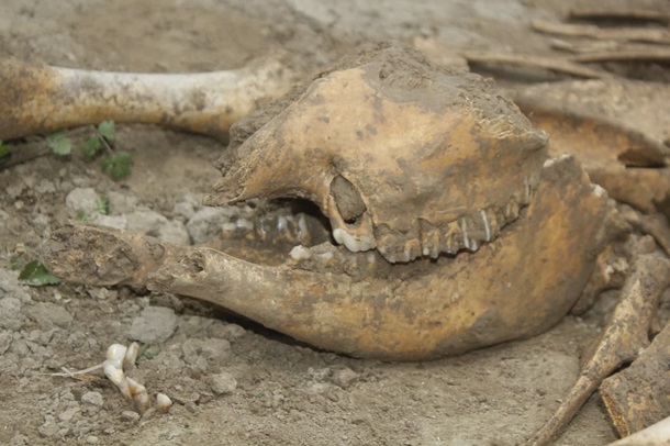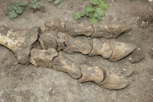 Во время копания котлована для строительства теплицы местный фермер наткнулся на кости, о чем сообщил археологам. Специалисты, прибывшие на место раскопок, выяснили, что это скелет индрикотерия — гигансткого носорога, который обитал на Земле 20-30 миллионов лет назад.