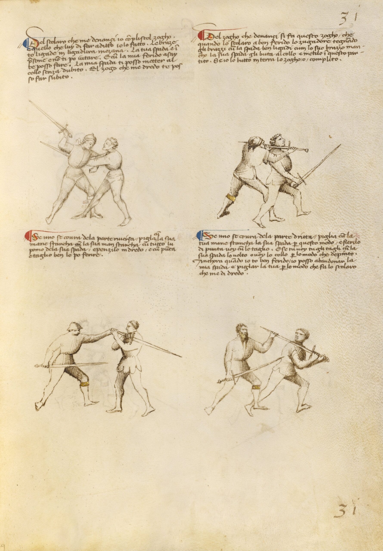Манускрипт, датируемый 1404 годом, предлагает богато и обильно иллюстрированные демонстрации средневековых итальянских боевых приемов на длинном мече. В оригинальной рукописи, которую можно увидеть наброски, выполненные чернилами с листовыми золотом на коронах и подвязках.