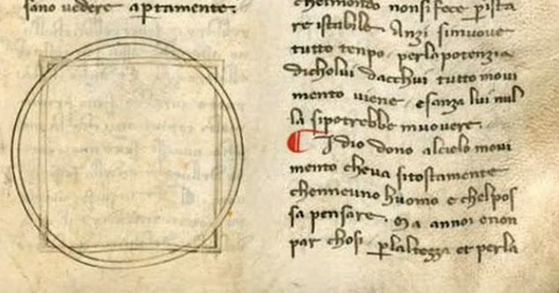 В двух рукописях изображен квадрат, наложенный на круг — концепция, позже использованная Данте для описания своего видения Бога в Божественной комедии.