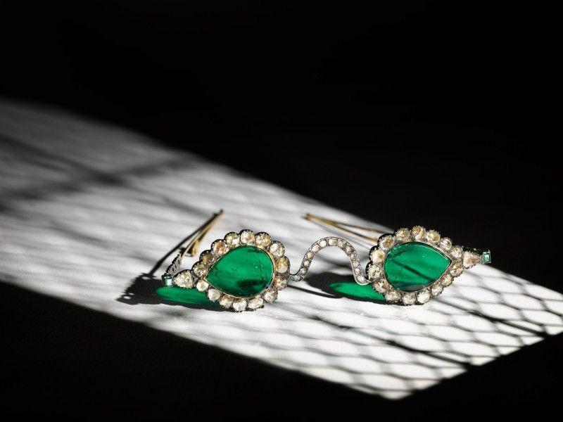 Изумрудные линзы и оправа с алмазами: на аукцион выставили очки Великих Моголов