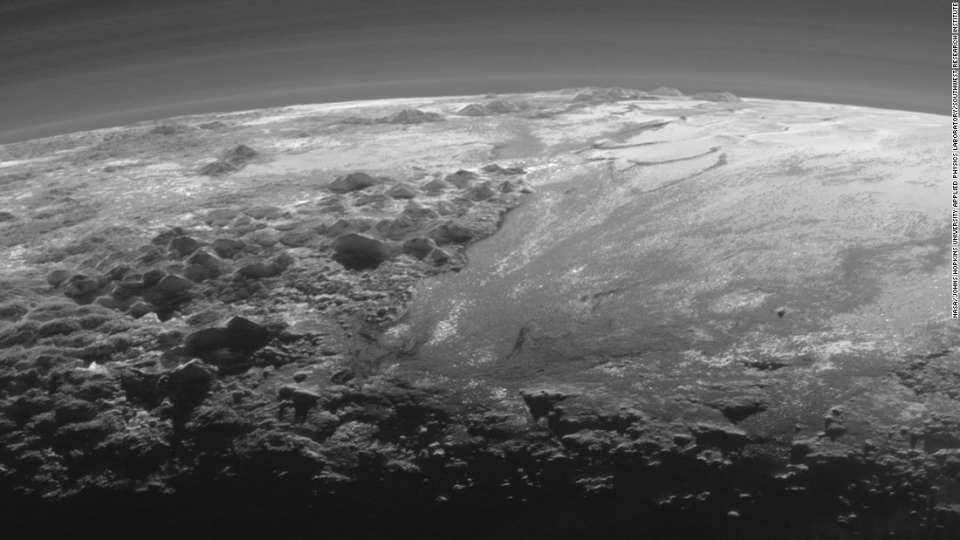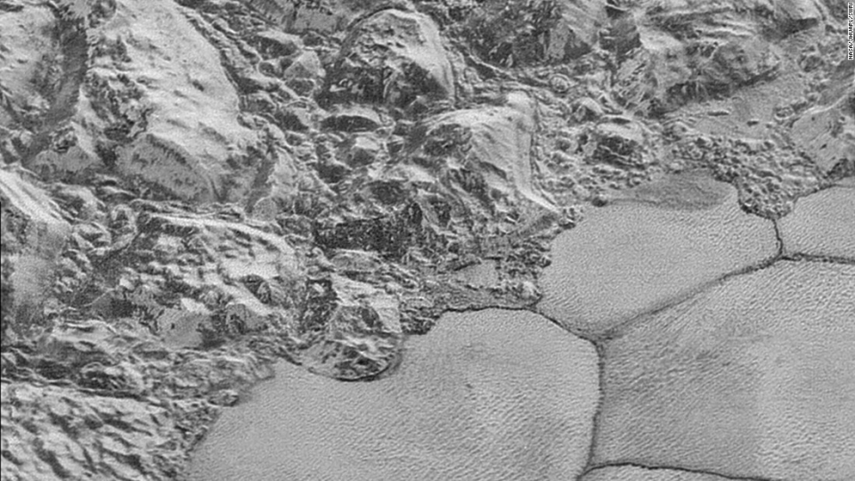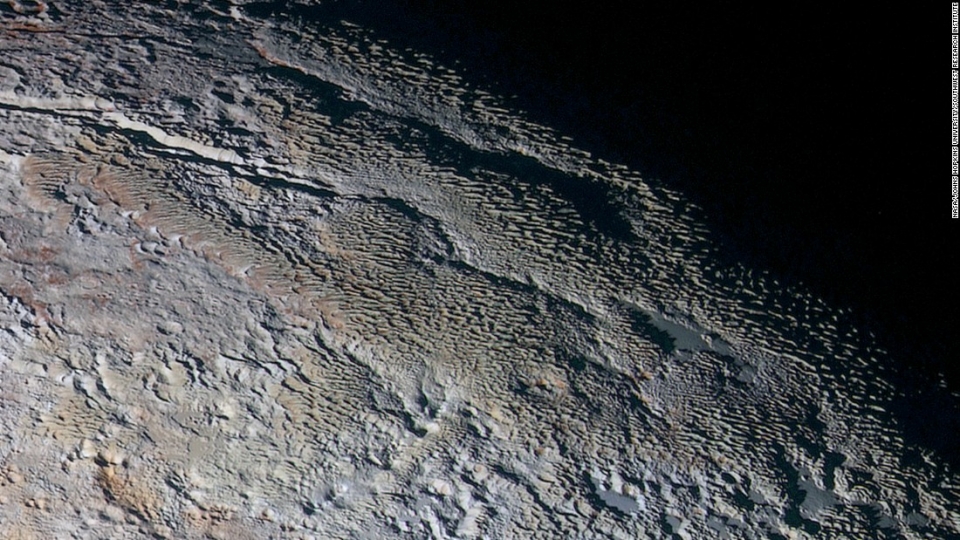На снимках четко видны горы, ледяные равнины и кратеры со слоями, что является свидетельством изменений, характер которых члены команды New Horizons пока не установили.