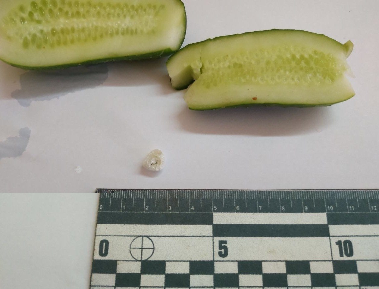 Отмечается, что подобная «посылка» попала в учреждение как передача заключенному. В обычных зеленых огурцах был аккуратно спрятан сверток белого цвета с неизвестным веществом внутри.