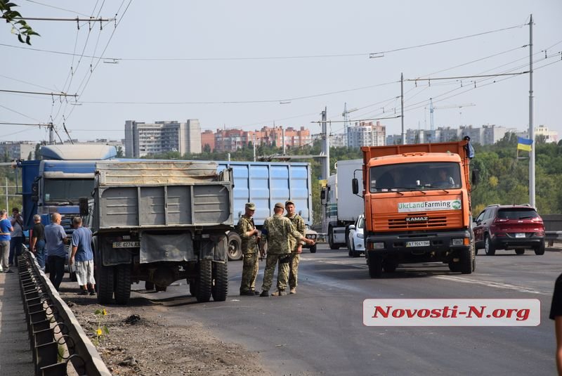 В Николаеве с утра неуправляемая фура перекрыла полосу движения по Ингульскому мосту