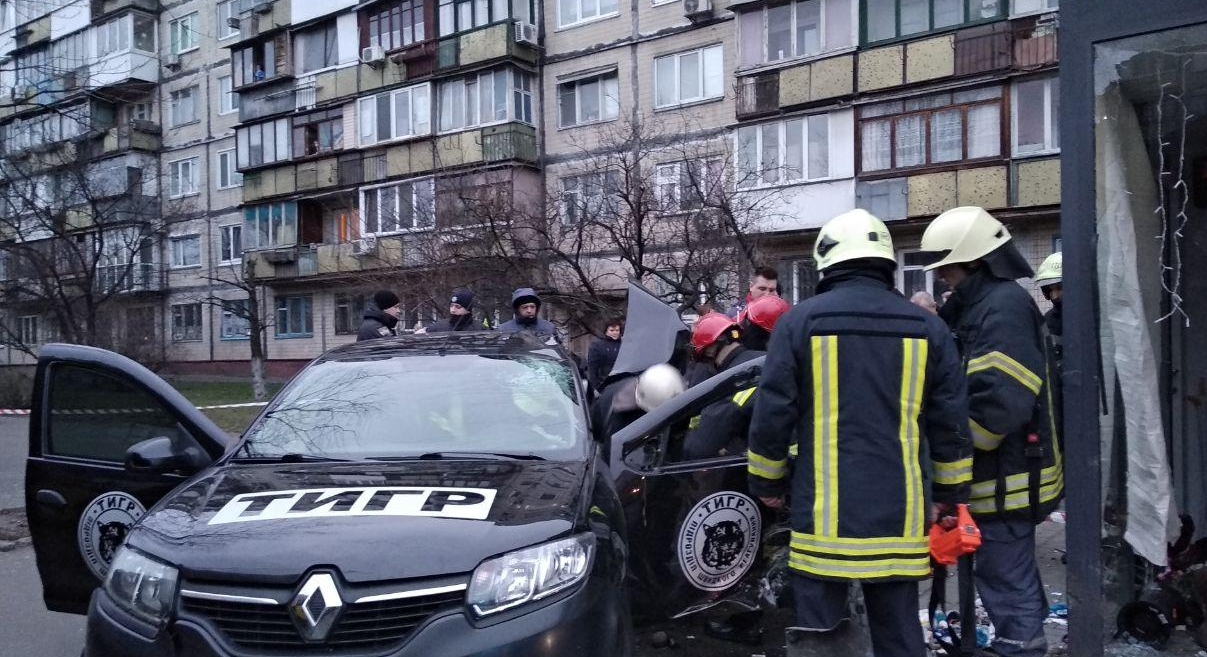 В Киеве произошло дорожно-транспортное происшествие, в результате которого автомобиль въехал в остановку общественного транспорта. Один человек погиб, двое пострадали.