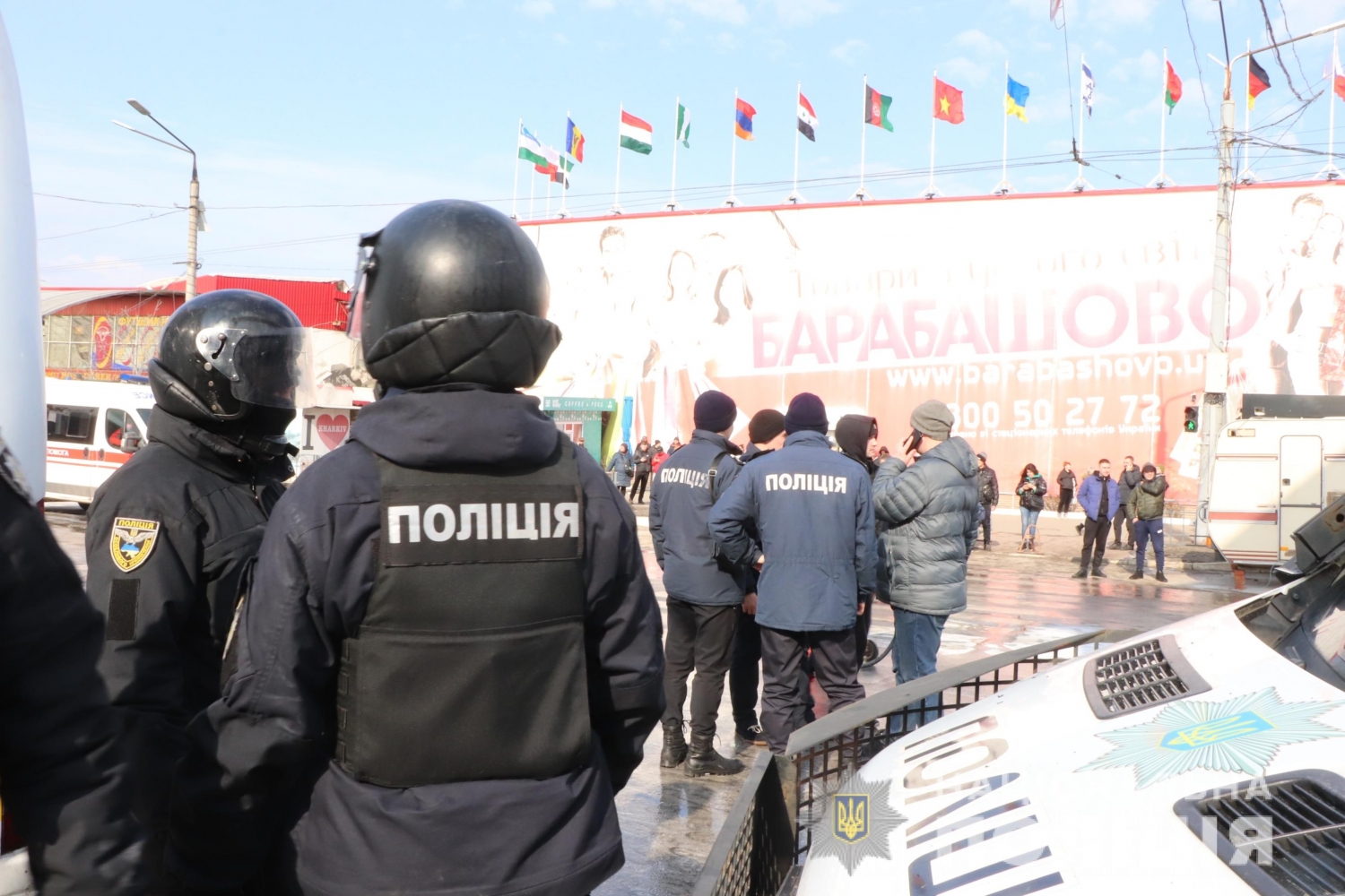 Как сообщалось ранее, 27 февраля, на въезде ТРЦ «Барабашово», где начались работы по строительству дороги, которая соединит Салтовку и центр Харькова, произошла крупная потасовка между предпринимателями рынка и группой людей в форме муниципальной охраны Харькова.