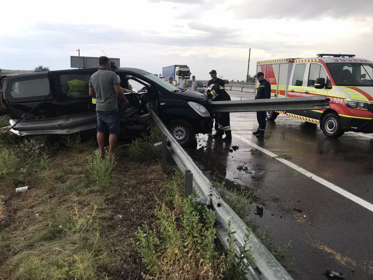 ДТП на херсонской трассе — отбойник насквозь проткнул легковушку
