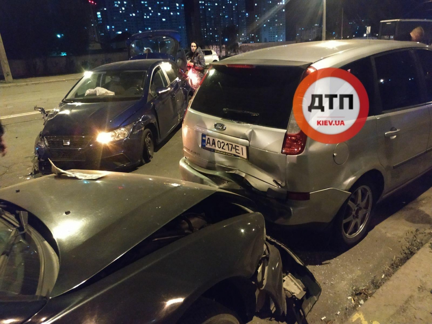 Сегодня ночью в Киеве на Троещине произошло масштабное ДТП с участием 8 автомобилей.
