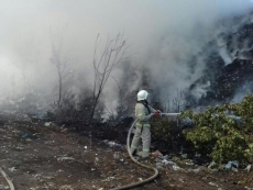 Вчера утром николаевские спасатели потушили пожар мусора на полигоне твердых бытовых отходов в Южноукраинске.