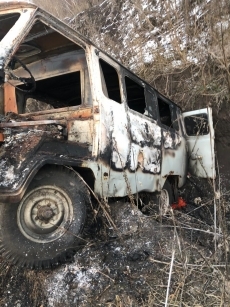 На границе с Россией обнаружили обгоревший «УАЗ», который не смог преодолеть инженерное препятствие украинских пограничников.
