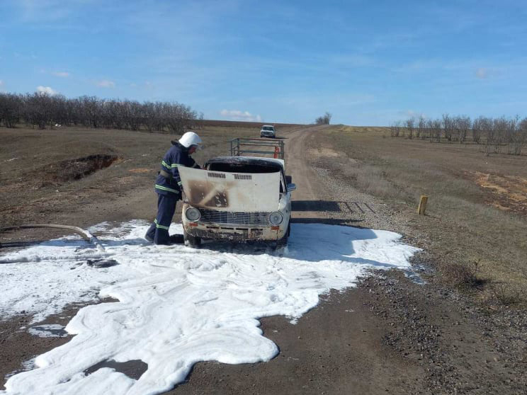 Сегодня утром в Николаевской области вблизи села Христофоровка около Баштанки горел автомобиль ВАЗ 21-01.