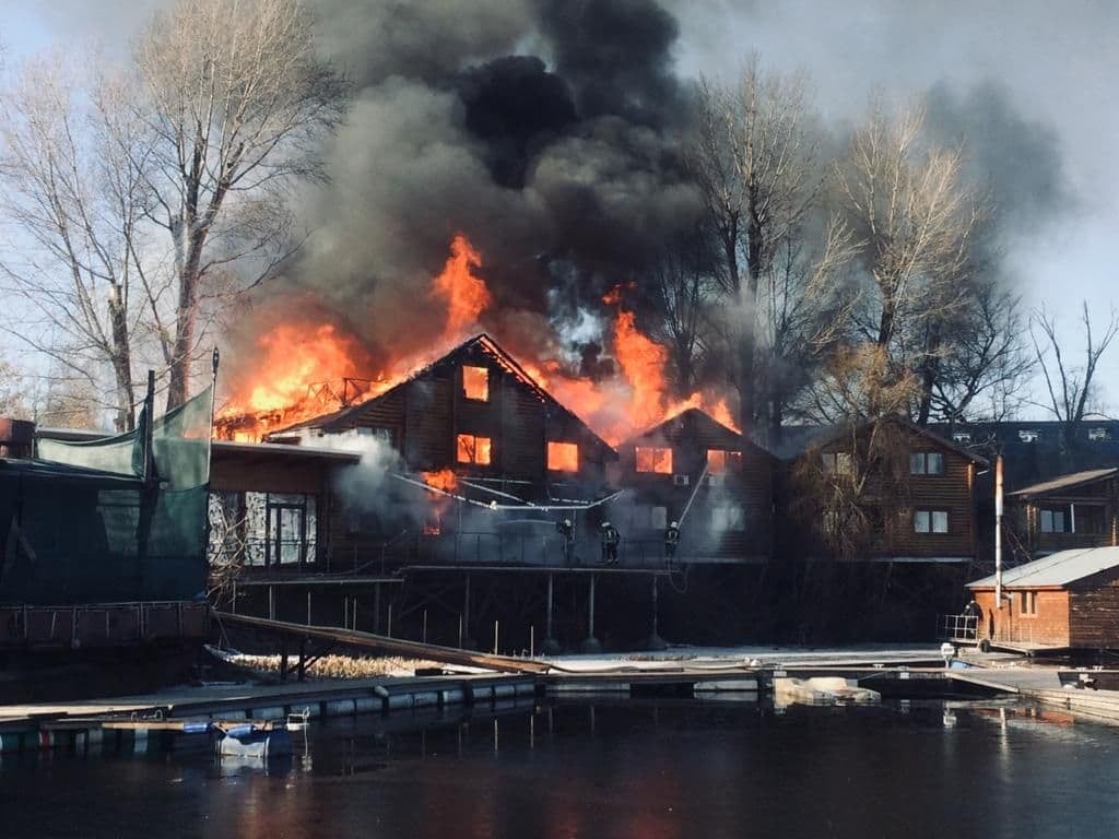 В Гидропарке в Киеве произошел большой пожар в комплексе «Фрегат».