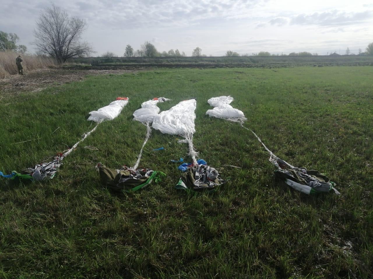 В ходе дальнейших поисковых действий пограничники обнаружили четыре сумки. Они находились в камыше неподалеку от государственной границы. Осмотрев находку, пограничники обнаружили в ней четыре парашюта, которые впоследствии передали сотрудникам компетентных правоохранительных органов Украины.
