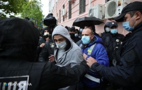 В Киеве под Печерским райсудом произошла потасовка. Там идет суд над Медведчуком