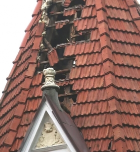 — Сегодня, около 12 часов дня, во время мощного грозового ливня, разряд молнии попал в шпиль башни исторического здания городской детской клинической больницы и повредил ее черепичное покрытие, - говорится в сообщении.