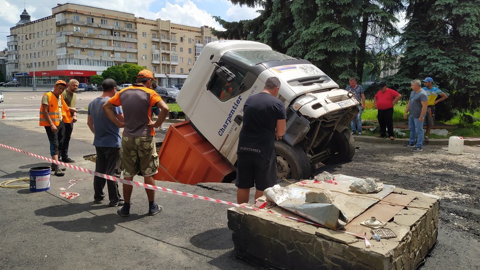 19 июня на Соборной площади в Житомире провалился грузовик.
